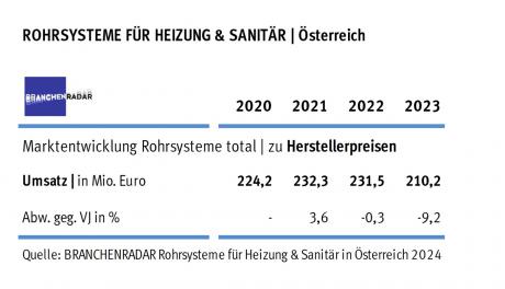 Trotz steigender Verkaufspreise entwickelte sich in Österreich der Marktumsatz mit Rohrsystemen für Sanitär und Heizung im Jahr 2022 nur seitwärts.